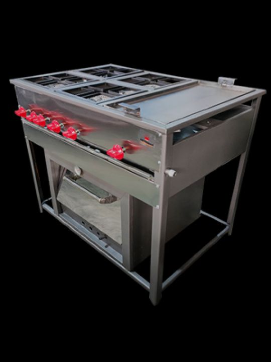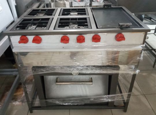 4 FOGONES, PLANCHA  Y HORNO INDUSTRIAL